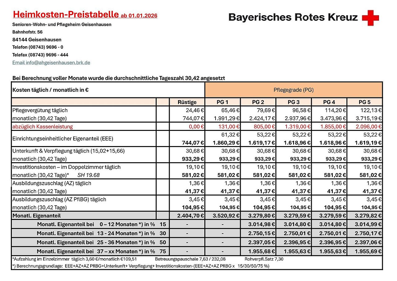 Heimkosten – Haus Geisenhausen